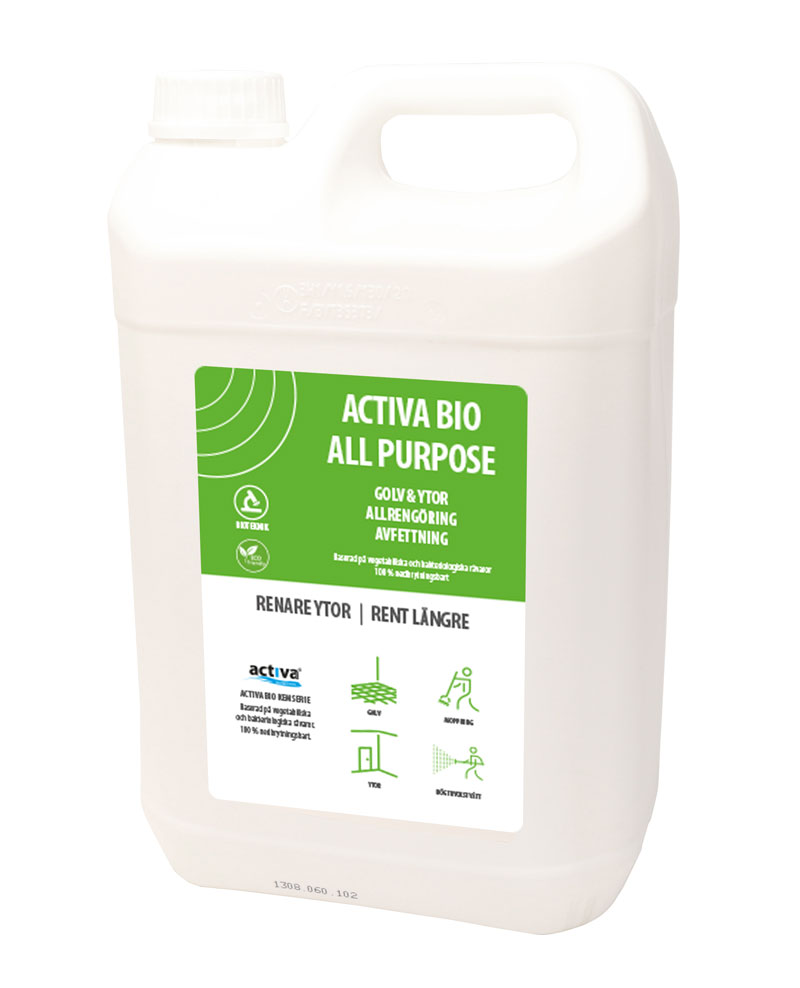 Activa BIO All Purpose rengör alla typer av golv och ytor effektivt. Förstärkt med BIOSURF® och CONSORTIUM®-process vilket kombinerar biotensider med mikroorganismer i produkten. Unik parfym ger golv och ytor en ren och fräsch doft.